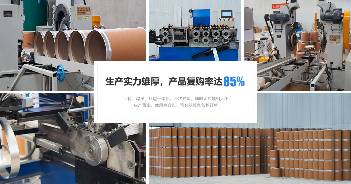 常用的底、蓋由膠合五夾板、六夾板、七夾板做桶蓋桶底,鍍鋅帶鋼做箍,280g規(guī)格的牛卡紙通過專用設(shè)備卷造8層而成,桶身厚度達(dá)到3mm,專用的粘膠劑用高型號(hào)聚乙烯醇熬制而成,無毒無味,確保桶身堅(jiān)硬度。